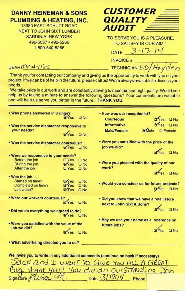 Read Our Customer Feedback Danny Heineman Sons Inc